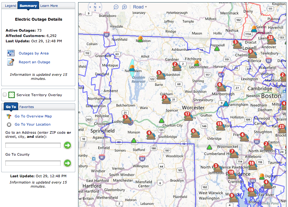 . Planned outages; Connected data portal {{link.text}} Most popular. The map represents power outages for four power companies in Massachusetts
